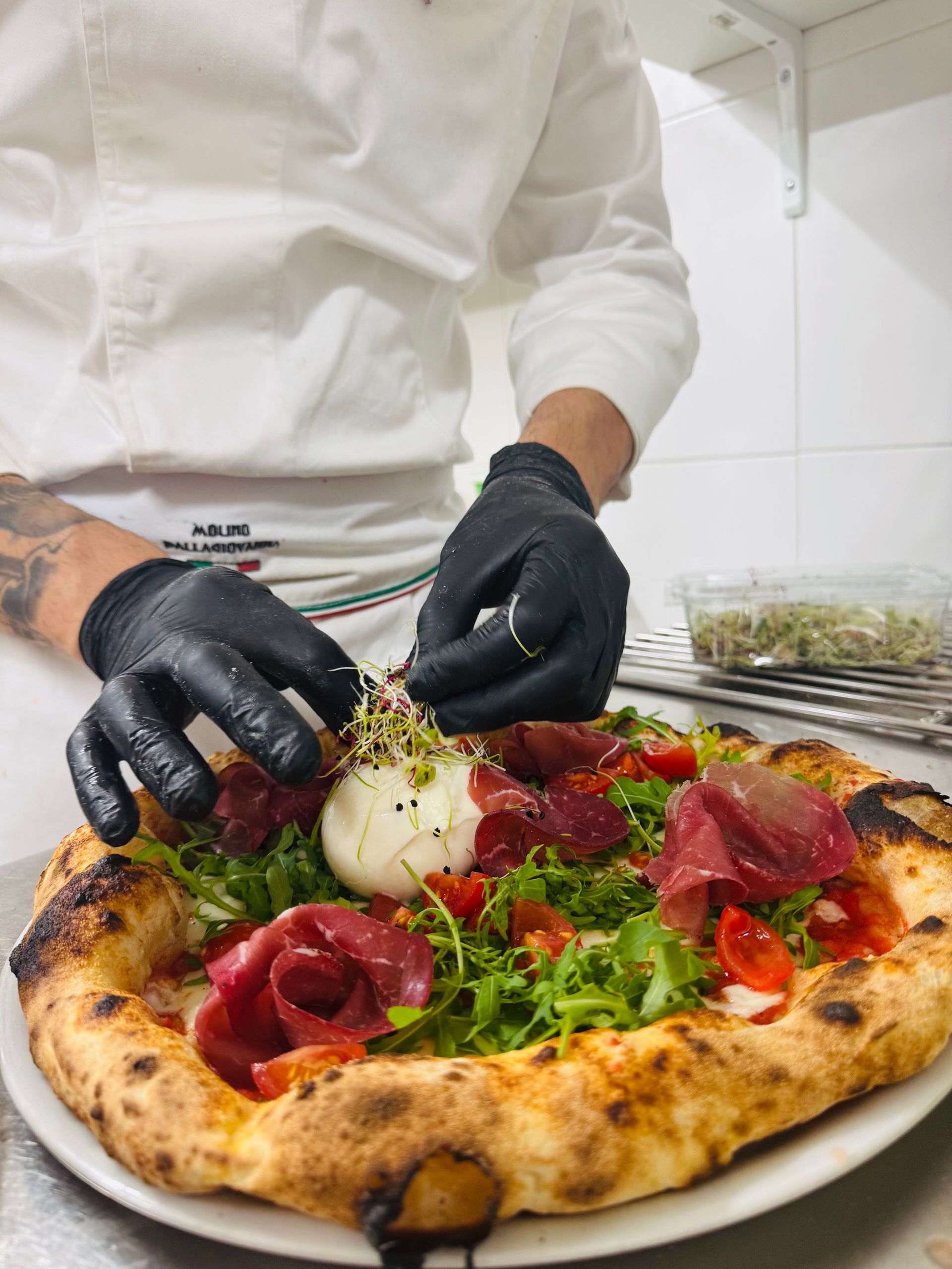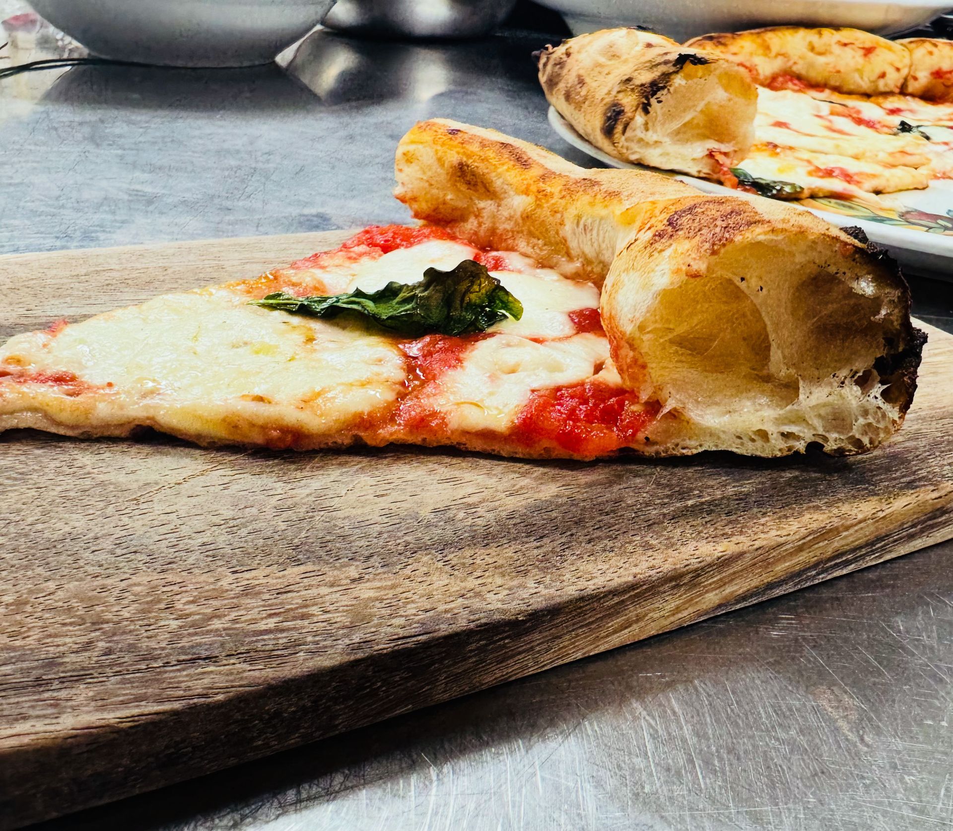 Nos pizzas sont cuites au feu de bois pour garantir une pâte aérienne, légère et croustillante, comme à Naples.